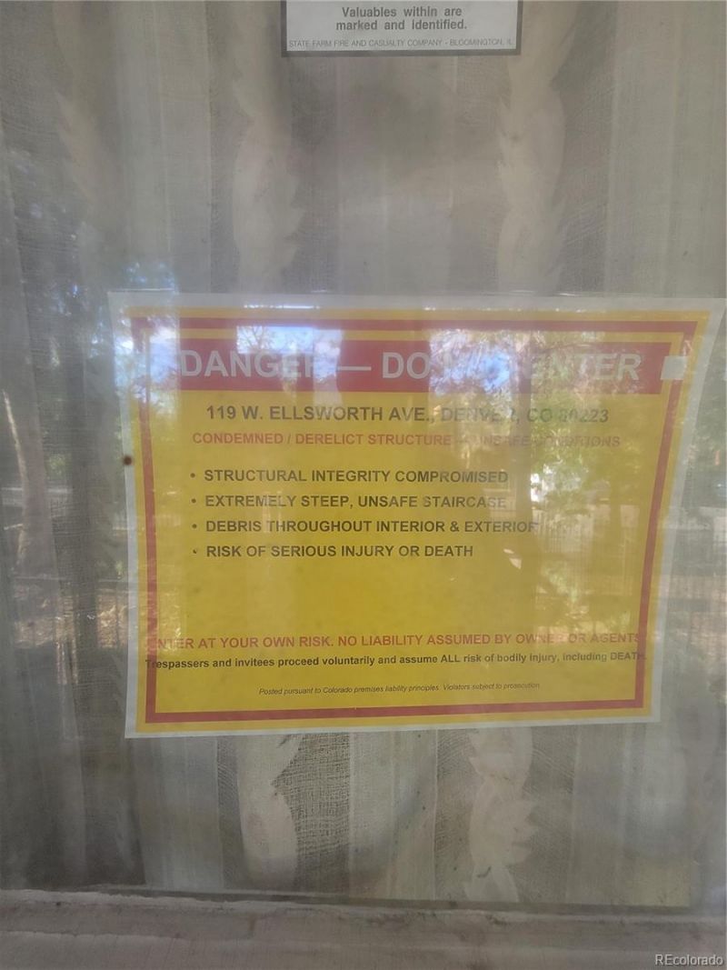 Incredible Baker ? Investor/Developer Special!Welcome to 119 W Ellsworth Ave ? a rare chance to own a piece of one of Denvers most vibrant and fastest-appreciating neighborhoods! Nestled in the heart of historic Baker, this property offers tremendous upside for visionary investors, seasoned rehabbers, and developers ready to bring a classic Denver lot back to life.Why Baker? Why Now?Baker is one of Denvers most sought-after transitional neighborhood?walkable, full of character, & surrounded by trendy restaurants, breweries, boutique shopping along South Broadway, & quick access to downtown, Wash Park, and major commuter routes. Location, location, location!The Opportunity:The Seller is motivated & working cooperatively with the City of Denver on a path forward that could include substantial relief of existing municipal liens ? subject to the Buyer completing code-compliant improvements and abating outstanding property conditions. For the right buyer, this creates a meaningful value-add scenario rarely available in this ZIP code.Scope of Work Includes:¢ Building rehabilitation to code¢ Fence repair¢ Vegetation maintenance¢ Debris removalImportant to Know:¢ Property is sold strictly AS-IS, WHERE-IS¢ Structure is currently condemned with compromised integrity cash or hard-money only.¢ Closing required on or before July 7, 2026¢ Buyers should conduct full due diligence and consult qualified legal counsel.?? Safety Notice: The structure is unsafe. Interior access by appointment only, for qualified and serious buyers. Please do not enter the property.Bottom Line:Prime Baker dirt + motivated seller + a defined path to significant lien relief + a firm closing timeline = a truly compelling opportunity for the right buyer. Properties like this in this location dont come along often.Bring your contractors, your vision, and your offers ? this one wont last!