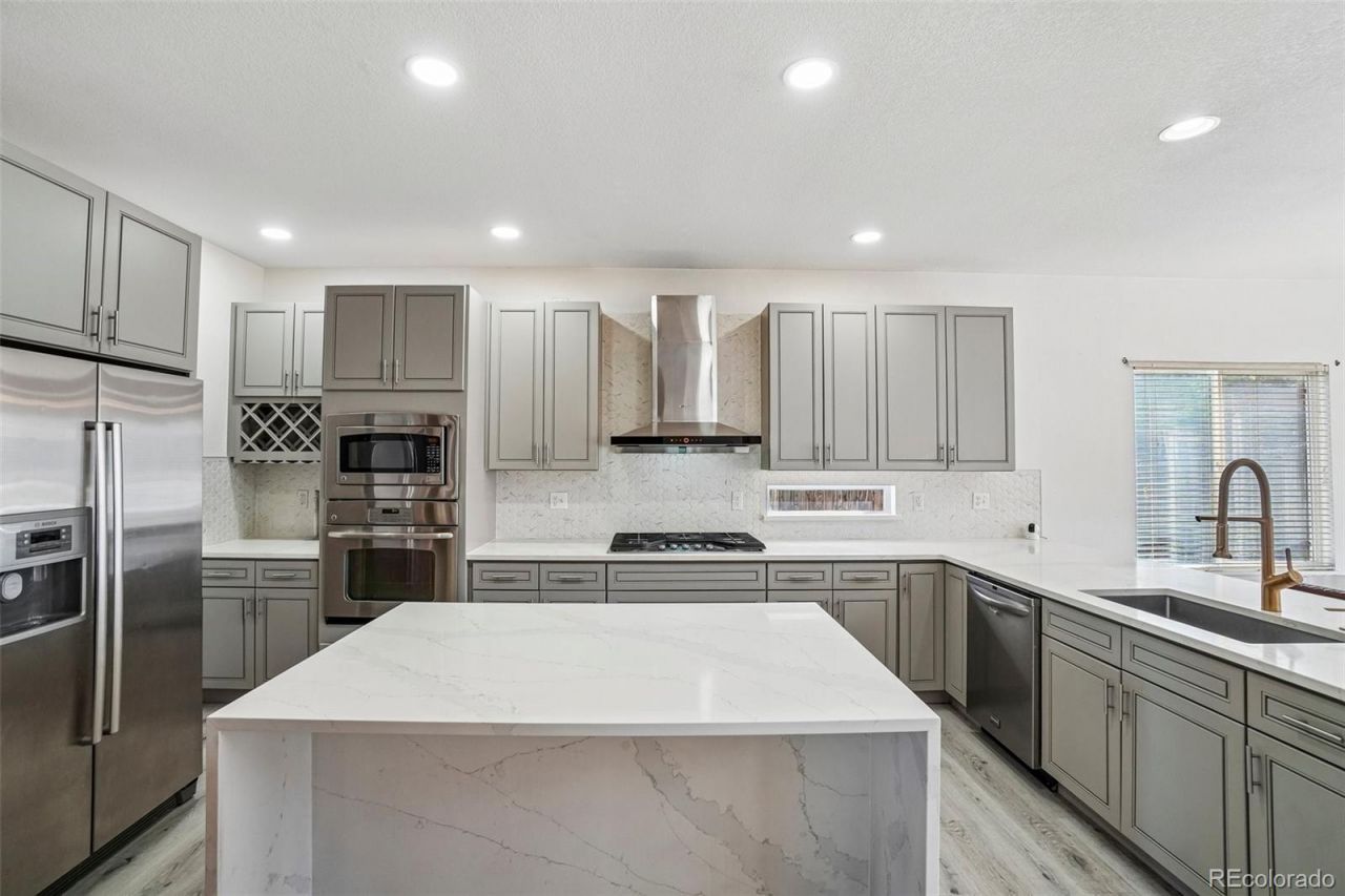Tucked on a quiet cul-de-sac in Saddle Rock Ridge in Centennial, CO 80015 this sought after Richmond American James model offers the perfect blend of space, upgrades, and location with 5 bedrooms, 4 bathrooms, a finished basement and a 3 car garage. Step inside to a light-filled open floor plan with soaring ceilings, expansive windows, and flexible spaces to suit your exact needs.The updated kitchen is the true centerpiece, featuring gray shaker cabinets, stainless steel appliances, quartz countertops and a designer backsplash. The large island with bar seating is perfect for entertaining and the corner pantry provides additional storage. The seamless flow between the kitchen, dining, and living areas creates a highly desirable open-concept layout. The spacious vaulted family room offers room to relax, complete with a gas fireplace and large windows overlooking the backyard.The primary suite serves as a private retreat with a bay window, generous layout and two walk-in closets. The luxurious five piece bath features an updated vanity with dual sinks and Quartz countertops, soaking tub, and separate shower. A rare and functional bonus, the home also includes an updated five piece hall bath, providing added convenience. With a main floor bedroom and adjacent powder bath, theres flexibility for a home office, guest room, or multi-generational living. Enjoy Colorado outdoor living in the private backyard with extended patio, offering space to relax, garden, or entertain.The finished basement with wet bar adds valuable square footage, perfect for a media room, game room, home gym, or additional living space.Additional highlights include luxury flooring, updated finishes, open layout, and move-in ready condition.Located in the Cherry Creek School District near parks, trails, Southlands, shopping, dining, and easy access to major commuter routes, this home delivers on location, layout, and lifestyle.