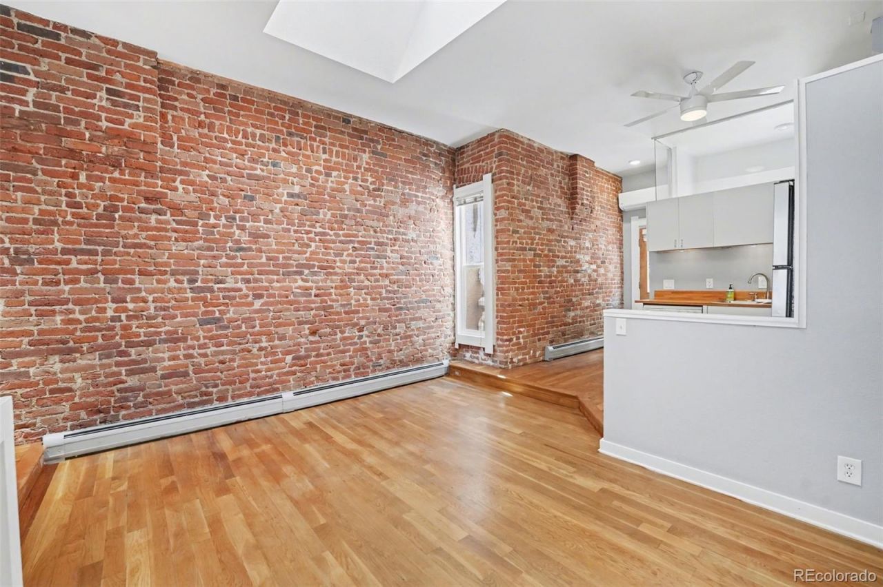 Discover the perfect blend of style and convenience in this historical rowhome in the heart of Denver! Just 1 block to the Highland Pedestrian Bridge, Metropolis Coffee, eateries, a small dog park, and Hirshorn Park, this home offers unparalleled access to urban amenities. The bright, open floor plan features solid hardwood floors, a sunken living room, butcher block counters, exposed brick, and high ceilings. The living room opens to a private backyard with a flagstone patio and lush lawn w/ sprinkler system. ? ideal for relaxing or entertaining. All windows were updated to double-pane vinyl, and coupled with the skylight, the unit has an abundance of natural light. The updated full bath is light and bright with large glass panels along the upper wall, a pedestal sink, and tiled floors. Washer/dryer combo unit included. Additional storage is available in the basement, accessed through the scuttle in the bathroom floor. Located within walking distance of fine dining, cultural venues, and transit options, this home embodies urban living at its finest. NO HOA. The units sewer line and shared community line were replaced in 2021, and the common boiler was updated in 2022. Heating is provided by a hot water/hydronic system. A/C is provided via an A/C mini split. A party wall agreement covers shared expenses. Street parking permits are available through the City of Denver for $25/year.
