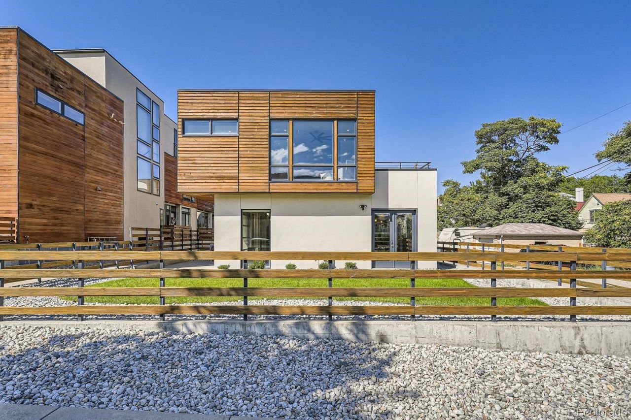 Positioned in one of Denvers most coveted enclaves?Jefferson Park, recognized by 5280 Magazine as one of the citys Hottest Neighborhoods?this striking two-story residence blends modern design with sophisticated urban living. A rare offering, the home features an attached two-car garage plus additional on- and off-street parking. The private, front-facing landscaped yard is designed for both relaxation and entertaining, seamlessly connected to the interior via a retractable glass garage-style wall and French doors for an exceptional indoor-outdoor experience. A generous patio provides ample space for dining and gatherings.Inside, curated contemporary finishes include stained concrete flooring, architectural lighting, and a custom built-in media feature anchoring the main living space. The kitchen is both elegant and functional, featuring quartz countertops, a versatile high-top island, and premium stainless steel appliances, including a six-burner gas range. An open staircase with tongue-and-groove wood detailing adds warmth and architectural interest.Upstairs, a dedicated laundry room offers convenience near the bedrooms. The primary suite is a private retreat with floor-to-ceiling windows, a custom walk-in closet, balcony access, and a spa-inspired shower. A secondary bedroom includes an en-suite bath, while the third bedroom?featuring French doors?also opens to the balcony, ideal for guests or a home office.Enhanced landscaping and meticulous upkeep elevate curb appeal. Located near Empower Field at Mile High, Ball Arena, and downtown, with easy access to dining, shopping, light rail, and major highways including Interstate 25 and Interstate 70.