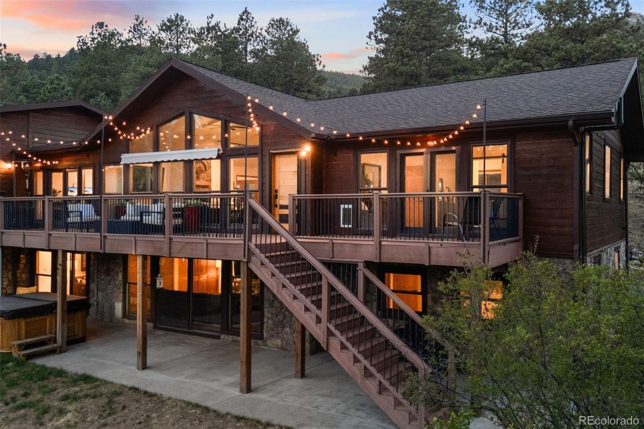 This home is a version of mountain life thats fully embraced, where the trails start at your back yard, the hot tub is fired up before the sun drops behind the ridge, and the 6 car garage fits everything youve collected along the way. Set on 2.42 private acres backing directly to Alder 3 Sisters Park, this 4-bed, 4-bath, 3,200 sqft home has space for every version of your life: 2 large living areas, a dedicated home office, formal dining room, huge primary, and oversized bedrooms. 3 outdoor living spaces flow through this home: a large trex deck off the kitchen designed for dining, grilling, and mingling; an expansive back deck connecting the main level, office, and primary suite to the mountain views; and a lower covered patio housing the hot tub w/ direct access to the lower level and in-law quarters. Built for the way people actually entertain, a private in-law quarters, with its own appliances and entrance, offers flexibility thats rare at any price point: multi-generational living, long-term guests, a separate retreat. What separates this home is the depth of care behind it. Over $108,000 in upgrades since 2022 include: 2025 primary bath renovation, updated kitchen appliances, whole-home water filtration w/ kitchen RO, home generator hook up, radon mitigation system, motorized window shades in the primary suite and living room, updated fireplace, new railing banisters, new sliding door, updated baths, new patio shade, lighting and hardware updates throughout, whole-house interior paint, hot tub with dedicated electrical, and dual laundry, one upstairs, one down. Furnace upgraded and re-piped, electrical panel updated, and exterior freshly stained. Nothing deferred, nothing left for the next owner to figure out. The 6+ car garage, dual RV parking, and overflow parking is nearly impossible to find at this price point in Evergreen. Centrally located w/ quick access to trails, schools, dining, hiking, and skiing. The rare home that truly matches the lifestyle.