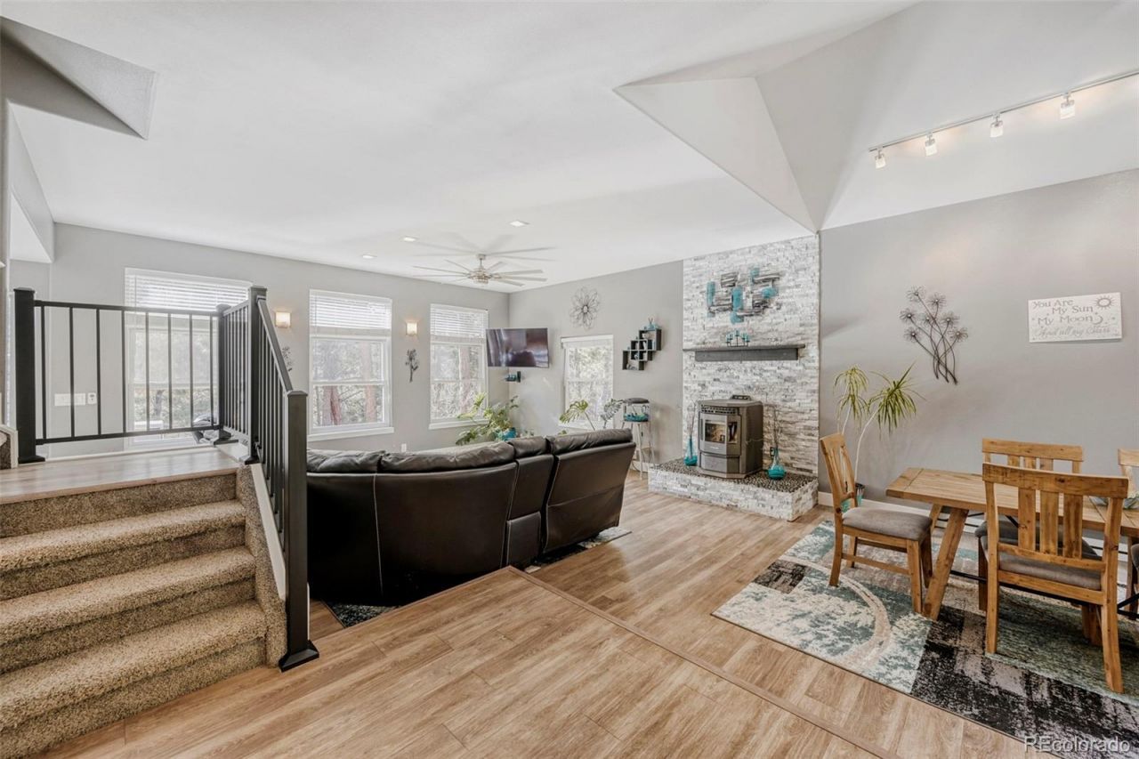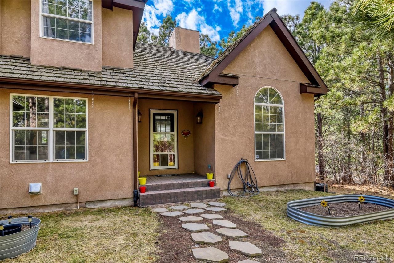 Dont miss an opportunity to own this 5 acre property featuring a thoughtful custom remodel! Enjoy the designer finishes throughout with the private lot you have been looking for! The kitchen has been updated with all new stainless steal appliances, sink, disposal, faucet, hardware, lighting, and new quartzite counters, backsplash and island. The main floor has new paint, new doors, new trim, and LVP flooring throughout. The powder room has been completely remodeled with new large vanity with quartzite countertops, new fixtures, new mirror, and new toilet. The main level has a great open layout with a living room, dining room, kitchen, nook, office and laundry with views of the scenic wooden lot. The upper level has 4 bedrooms and 2 full bathrooms including a primary suite with spa-like 5 piece bathroom and enviable walk-in closet. The primary bathroom has new tile, new shower, new rare 6 foot bathtub, new toilet, new vanity, new mirrors, new quartzite countertops, new fixtures, and custom shelving in primary walk-in closet. The upper level also has new paint, new trim, new doors, and new flooring throughout (new carpet in the bedrooms, new tile in bathrooms, and new LVP in the hallway). The basement has enormous potential! It currently has space for an additional living room, an additional dining room or game space, 5th bedroom, 3/4 bathroom, and 2 storage rooms. This property gives you the chance to delight in Colorados beauty and the peace and quite of country living with the convenience of a central location. With easy access to I-25, this property is minutes from Monument, 25 minutes to Castle Rock, and 25 minutes to Colorado Springs.
