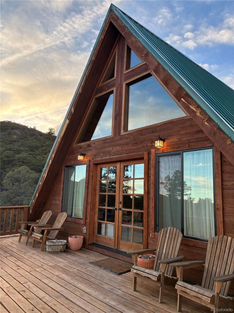 Beautifully finished new custom cabin (2025) on 5.26 acres awaits you in the picturesque Sangre de Cristo range of the Rocky Mountains. This year-round mountain home features tongue-in-groove vaulted ceilings, an open floor-plan, and southern exposure for passive solar warmth. The cabin is mostly off-grid, using a very efficient Rinnai propane wall heater, tankless water heater, and back-up auto-on whole-house propane generator. Underground high-speed fiber optic internet was recently installed at the property, providing your internet connection to the outside world. Work from home with no interruptions, using the upstairs loft with a second (non-conforming) bedroom that doubles as an office or studio. Year-round access on County maintained roads and rare snowfalls over a few inches make this a perfect place to live full-time. Enjoy the peace and quiet, regular wildlife sightings, a delightfully cool summer escape from the heat, and a cozy winter retreat. Soak up the sun from the spacious deck while gazing upon near and distant mountains and planning your fishing trip to nearby Mountain Home Lake, Taos, NM, or the Great Sand Dunes National Park. Property has a recent survey. A must see! GPS: 37.4835,-105.3118