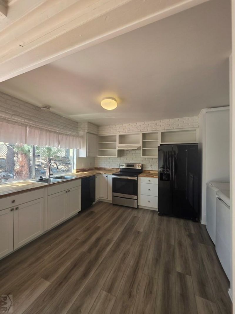Beautifully landscaped two-bedroom ranch-style home located near Lake Beckwith. This inviting home features an open-concept floor plan filled with abundant natural light. The living room offers a vaulted ceiling and a cozy woodstove, creating a warm and welcoming atmosphere. The updated kitchen includes newer appliances and attractive butcher block countertops. A full bathroom and two comfortably sized bedrooms provide functional living space. The front yard showcases mature trees and a patio area, while the private back deck offers a peaceful setting for relaxing or entertaining. Conveniently situated approximately 30 minutes from Pueblo and about one hour from Colorado Springs.