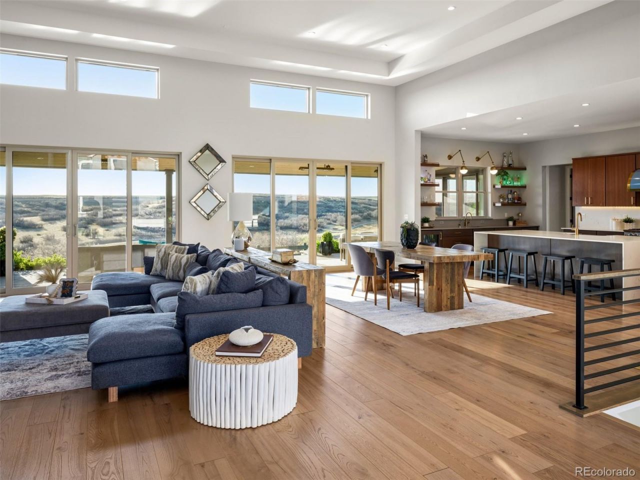 Where striking Mid-Century Modern design meets effortless main-level living offering a seamless blend of architecture, light, and nature. Expansive, oversized windows flood the interior with natural light, perfectly framing the surrounding landscape and drawing the outdoors in from the moment you step through the front door. Designed with both comfort and functionality in mind, the open-concept layout features a split floor plan with a stunning Great Room, Dining area, and a true Professional Chefs kitchen forming the vibrant heart of the home?ideal for both everyday living and elevated entertaining. The Primary Suite is privately positioned in the rear corner, showcasing breathtaking canyon views and a peaceful sanctuary to unwind. A separate Guest Suite at the front of the home offers ideal privacy for visitors, while two additional bedrooms?perfectly suited as dual offices or flex spaces?are thoughtfully placed off the Kitchen area, one complete with its own En-Suite. The lower level expands your living and entertaining options with a dedicated theater/spacious game room area, and a workout room featuring an infrared sauna. A guest bedroom & guest bath provide comfortable accommodations, while the unfinished utility area offers abundant storage space. Car enthusiasts will appreciate the oversized 4-car garage with two separate entrances, each complemented by its own mudroom for ultimate convenience.Step outside and experience something truly special¦ your own private connection to nature. The expansive patio overlooks a wide stretch of open space, offering a front-row seat to the beauty of each day. Mornings begin with birdsong and soft golden sunrises, while deer may quietly pass through, creating a tranquil, almost storybook setting. As evening falls, the sky deepens, the air softens, and the moonrise provides a peaceful, grounding close to the day. This is more than a home?its a lifestyle. Where nature meets peace, and every moment feels inspired.