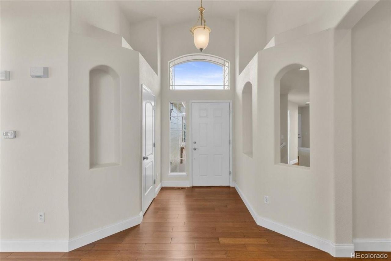 Discover a move in ready home in the highly desirable Castle Pines community, offering mountain views, open space, and modern upgrades throughout. Perfectly positioned with no rear neighbors, this property delivers privacy, natural beauty, and direct access to nearby trails, creating the ideal Colorado lifestyle.Inside, you are welcomed by a bright and airy floor plan with vaulted ceilings and expansive windows that fill the home with natural light. The renovated kitchen features quartz countertops, stainless steel appliances, a large center island, modern cabinetry, and a breakfast nook with scenic views. The open concept layout flows seamlessly into multiple living and dining areas, ideal for both entertaining and everyday living.The main level offers a spacious great room along with a separate family room featuring a fireplace and direct access to the outdoor patio, creating effortless indoor outdoor living.Upstairs, the primary suite is a true retreat, complete with vaulted ceilings, a private sitting area with its own fireplace, perfect for a lounge or home office, a five piece bathroom, and a walk in closet. Secondary bedrooms are generously sized and offer flexibility for guests, workspace, or additional living needs.Major updates include a newer roof 2023, water heater 2024, high efficiency furnace 2025, and fresh exterior paint 2026. Additional highlights include updated bathrooms, modern flooring, and a functional laundry and mudroom.A rare oversized third car garage with separate access offers flexibility for a home gym, workshop, or additional storage.Step outside to a private backyard surrounded by mature trees, backing to open space with mountain views and no homes behind you. Enjoy easy access to parks, pools, golf, and nearby shopping and dining.Located in a quiet neighborhood with convenient access to I 25, this home offers the updates, privacy, and lifestyle todays buyers are searching for.