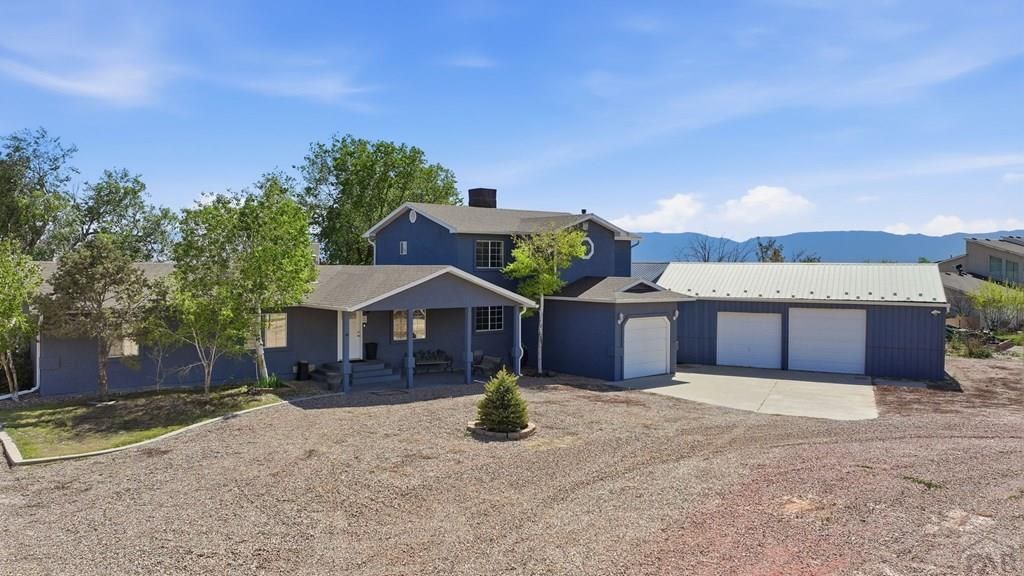 Welcome to your Colorado dream home, a stunning 4-bedroom, 2-bath residence in Penrose that perfectly blends luxury living with unparalleled business potential. This property is a rare find for entrepreneurs and business owners, featuring a massive 2,057 sq. ft. climate-controlled workshop with dual mini-split units, a commercial roll-up door, and multiple 20-amp outlets. It is perfect for a home business hub, showroom, or workshop. The professional-grade infrastructure is further enhanced by new commercial gutters, an attached garage with custom epoxy flooring, and a detached 2.5-car garage wired with 230V. Inside, the home impresses with soaring ceilings, a striking spiral staircase leading to a spacious loft and private office, and a chef's kitchen boasting granite countertops, soft-close cabinetry, and premium Samsung appliances. The remodeled master suite offers a spa-like retreat with a nine-head rainfall shower, while mirrored tinted windows and two fireplaces ensure year-round efficiency and comfort. Securely monitored by a Ring camera system, the exterior features an oversized Trex deck, a vibrant garden with a new gazebo, a grilling station, and an AstroTurf dog run. Strategically located just 25 minutes from Colorado Springs and Pueblo, this exceptional property offers the ultimate live-work sanctuary for those ready to scale their operations without leaving home.