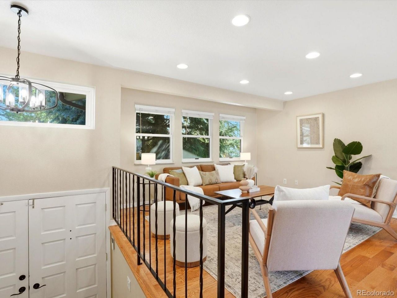 This bi-level home in Pine Valley Estates lives beautifully across both levels with a layout made for real life and easy entertaining. The main level welcomes you with hardwood floors throughout the living spaces and new light fixtures that carry from the entry though to the kitchen and dining area. Two bedrooms on the main level include the primary, plus a jack-and-jill full bath with rare en-suite access - a true primary setup that many comparable homes in this floor plan simply dont have. The updated and open concept kitchen features granite counters, tile backsplash, and a large island. The living and dining spaces flow seamlessly with the kitchen and out to the Trex deck. The 180-degree views from your deck include the Colorado sunsets to the west and the DTC skyline that make every evening feel worth savoring. Not to mention the large lot with updated landscaping, front and back, featuring raised garden beds with a garden already started for you!The lower level brings in ample natural light through garden windows, with two additional bedrooms, bath with walk-in shower, and a wood-burning fireplace anchoring the great room. The expansive great room is the perfect flex space for a second living area plus a playroom or home office. The oversized attached two-car garage includes a workbench and tons of built-in storage.Then theres the location - steps to George Wallace Park + trails, minutes to Cherry Creek Reservoir / State Park, and right in the heart of the DTC corridor with dining, shopping, and employment at your doorstep. Brand new carpets and major systems updated: furnace, A/C, & humidifier (2019), windows (2022), water heater (2025).